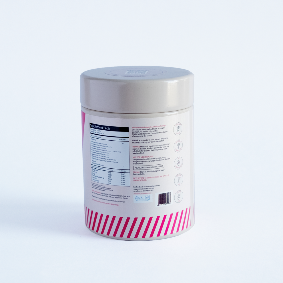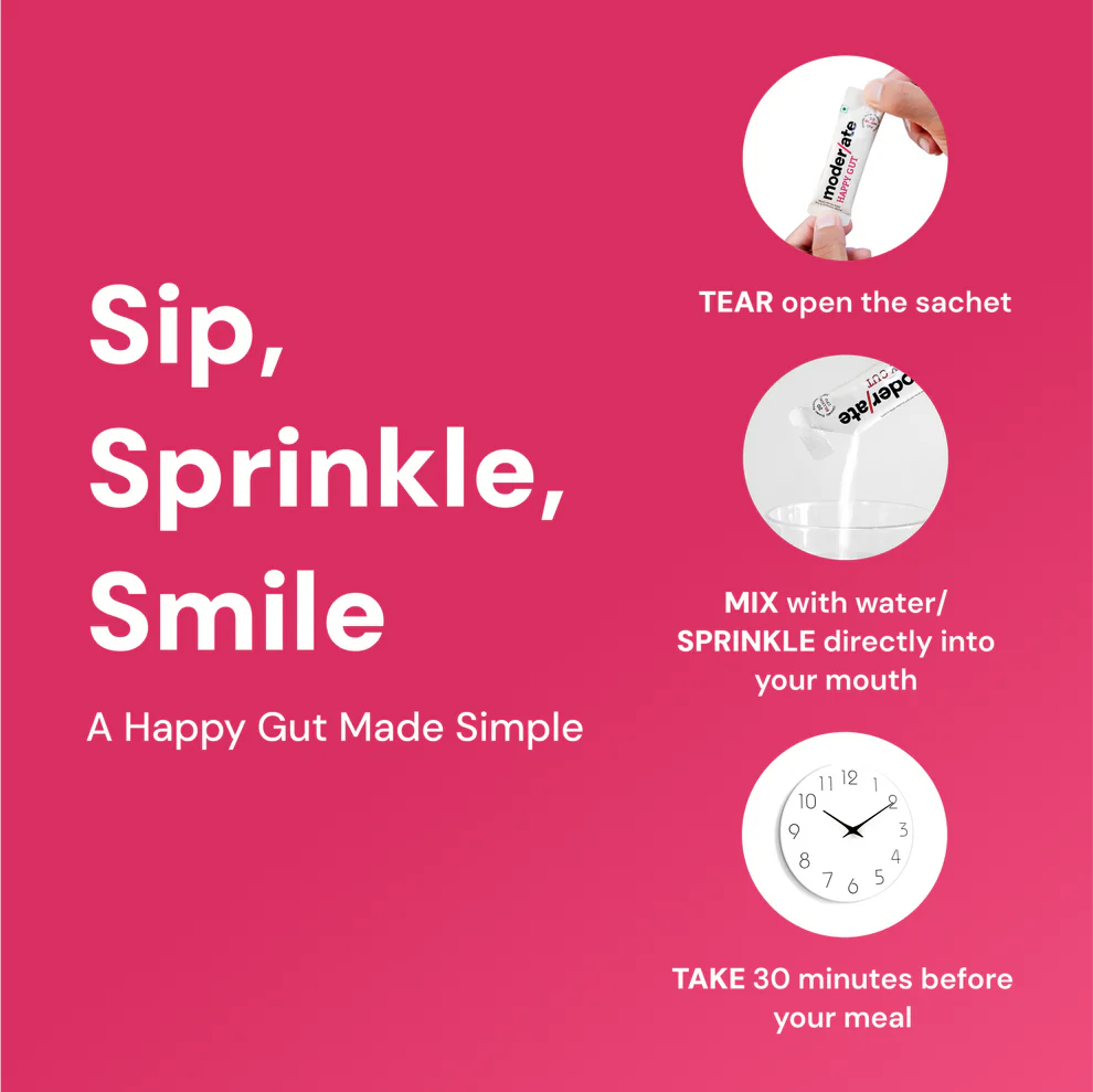 HAPPY GUT contains effective and diverse blend of pre-probiotics that helps build healthy gut microbiome to tackle various gut issues.