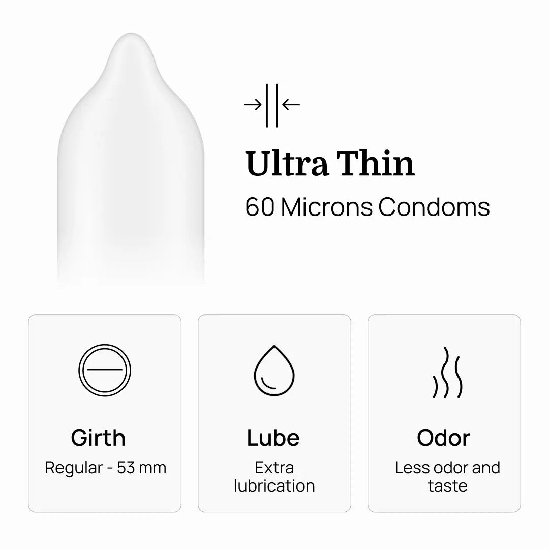 - Ultra-thin condoms (60 microns) for a natural feel