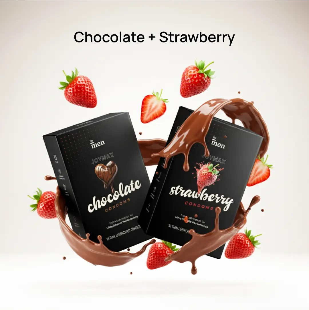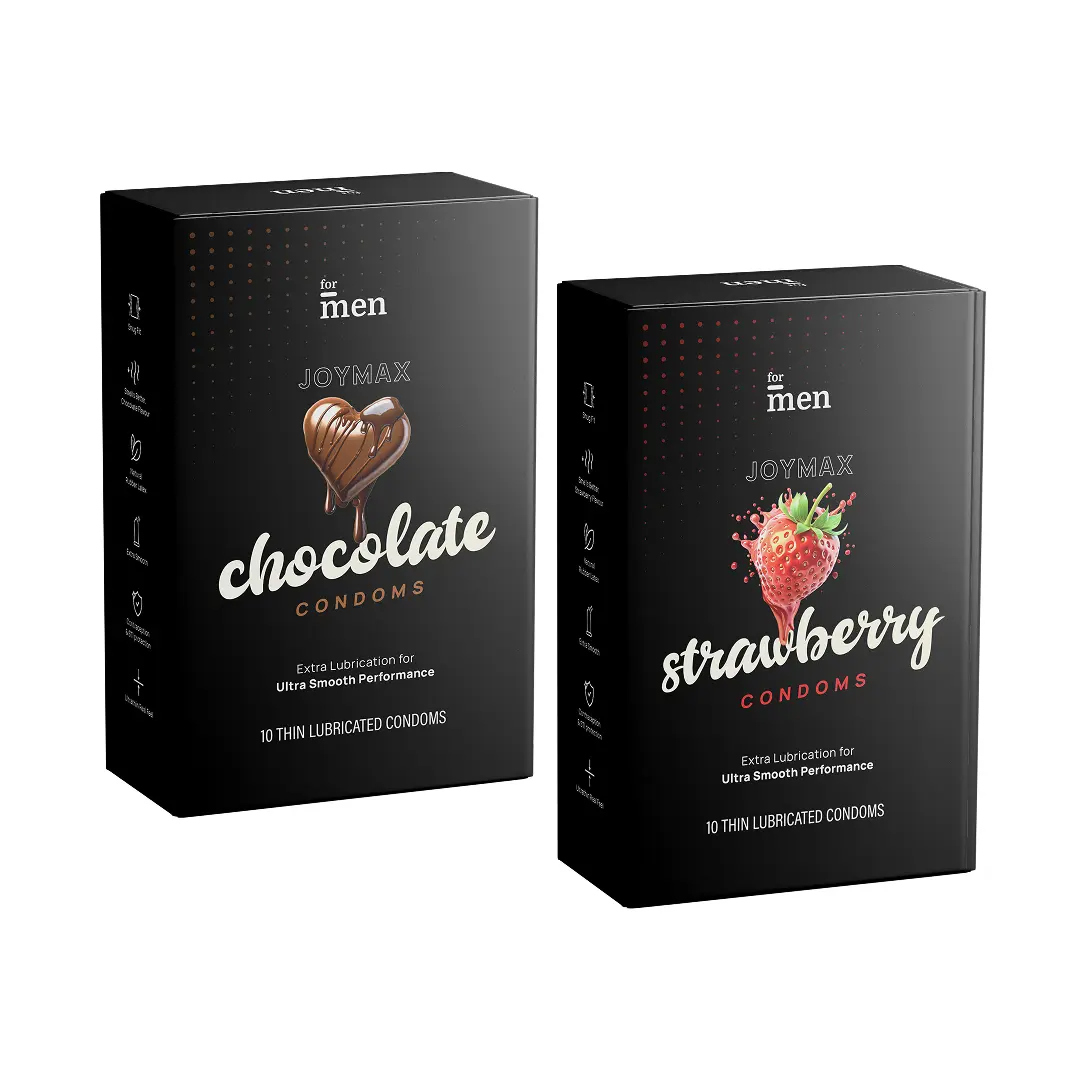 - Includes JoyMax Chocolate & Strawberry Condoms (10 each)